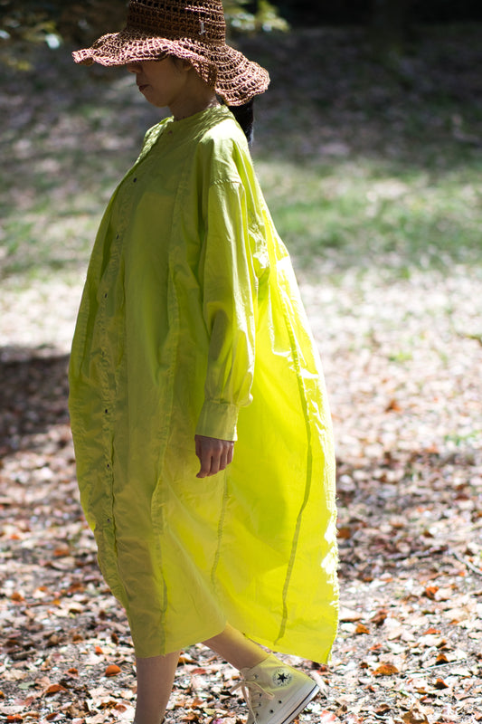 超細番手タイプライターシャツワンピース/Superfine cotton shirts dress/Lime yellow
