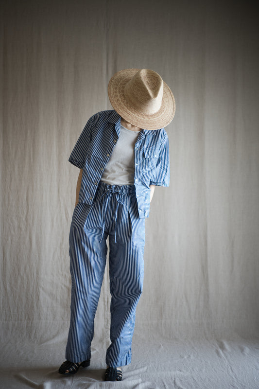 GIZA/SUPIMAワンタックイージーパンツ / GIZA/SUPIMA One-Tuck Pants / Blue Stripe