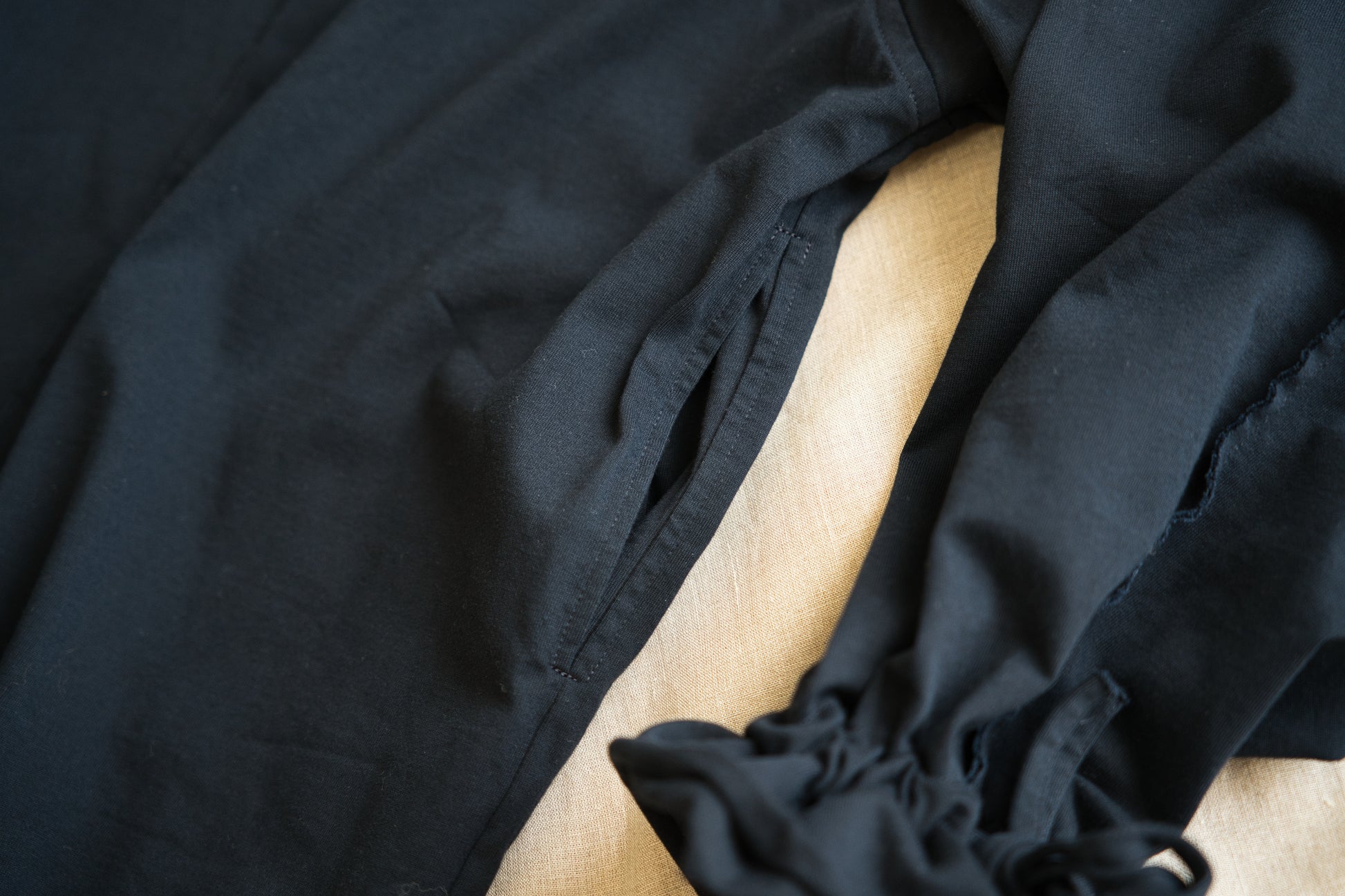 デザインは、アームホールを大きく設計し、たっぷりした袖付けにより、抜群の着心地になりました。ストレートシルエットの身頃と対照的にたっぷりとした袖をつけたことで、どこにもない絶妙なデザインに仕上がりました。
