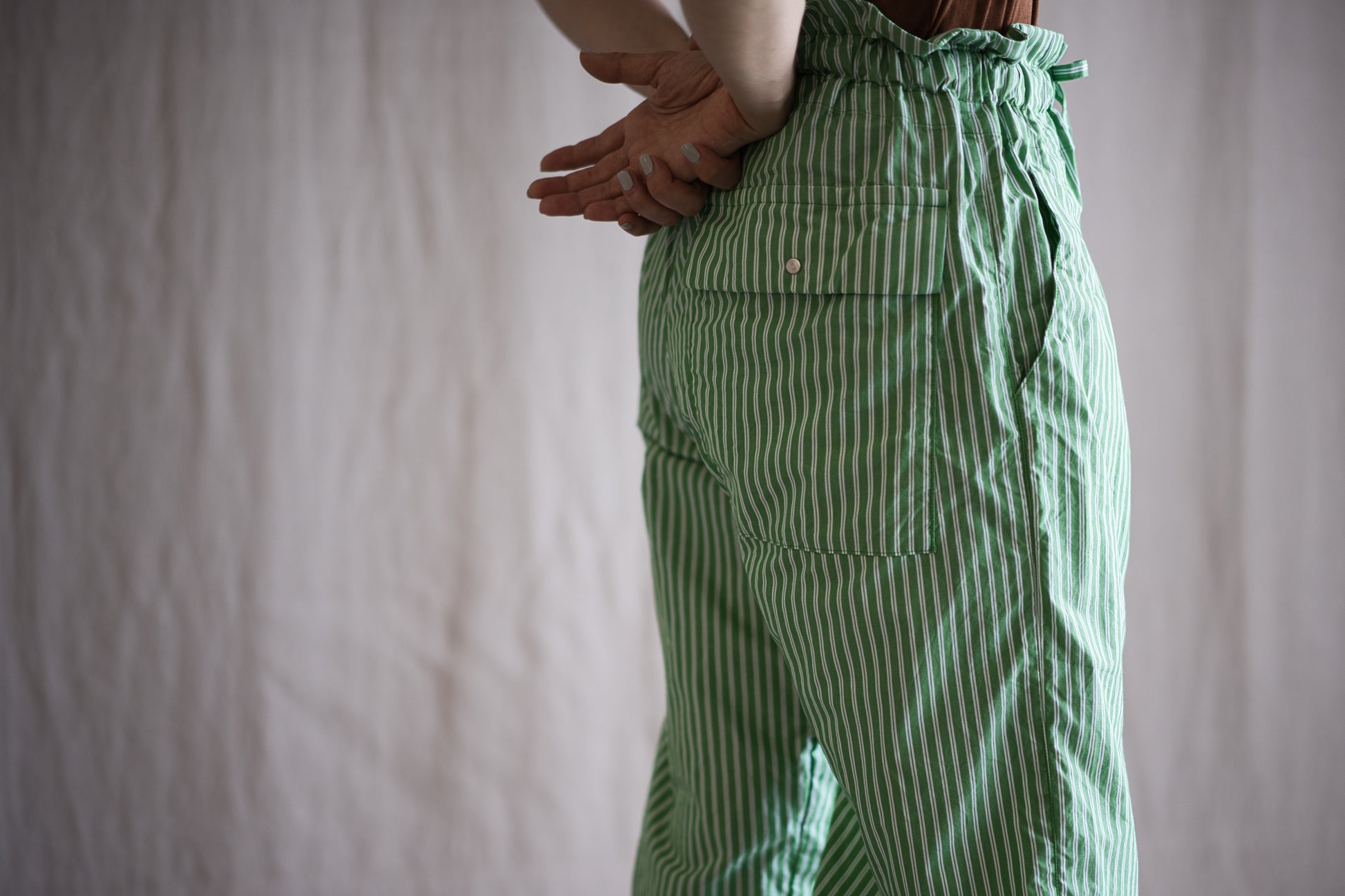 GIZA/SUPIMAワンタックイージーパンツ / GIZA/SUPIMA One-Tuck Pants / Green Stripe