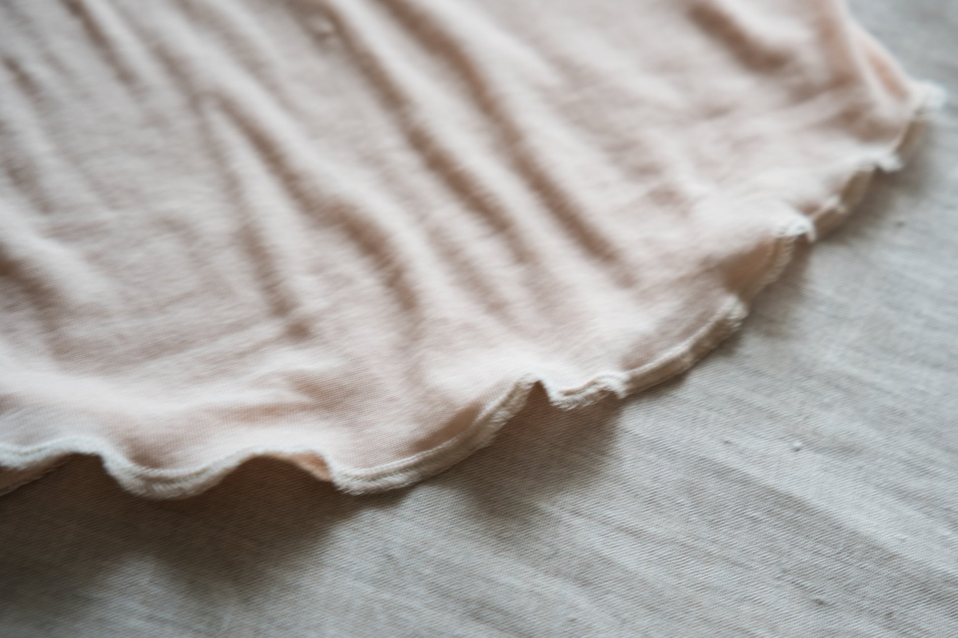糸の製造段階で強い撚糸をかけることで、シャリ感のある春夏にぴったりな肌触りに仕上がりました。細かなリブ編で編んだカットソー生地は、ストレッチ性に富み、体を優しく包みます。