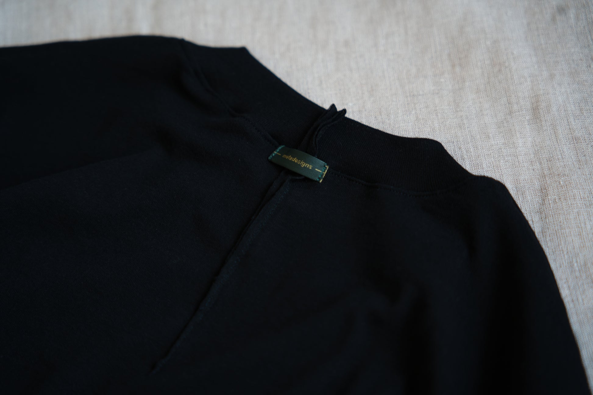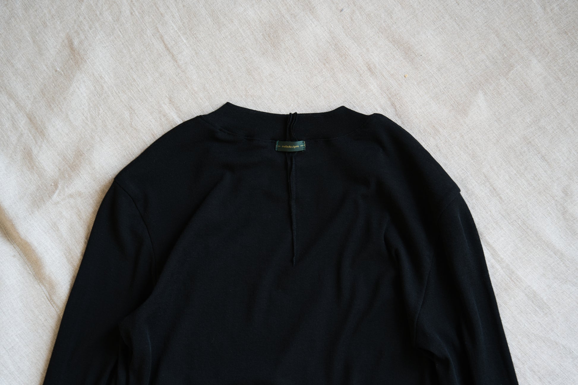 この素材の極上の着心地を、出来るだけストレスなく体感頂きたいので、体に触れる部分は一枚仕立てでデザインしました。