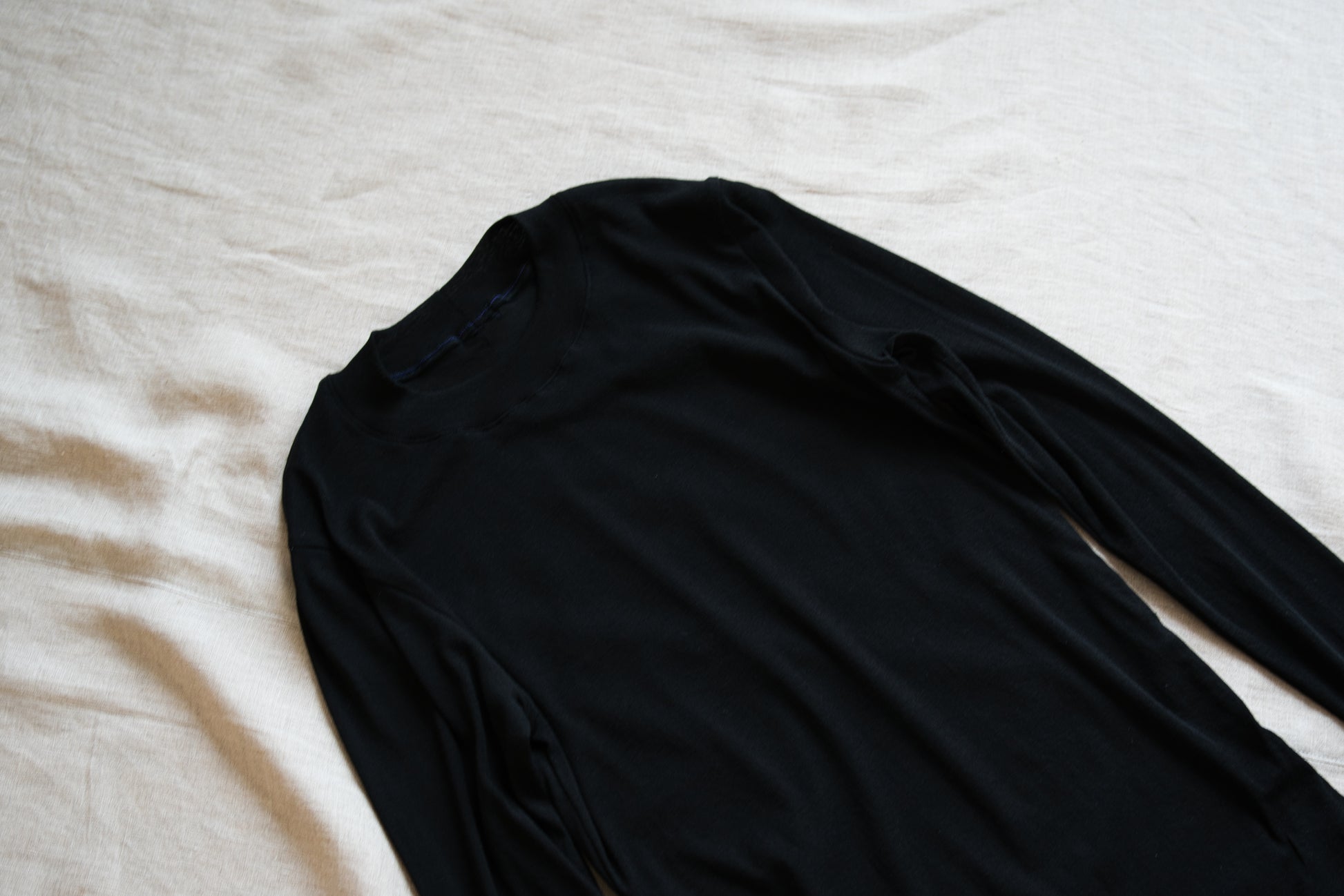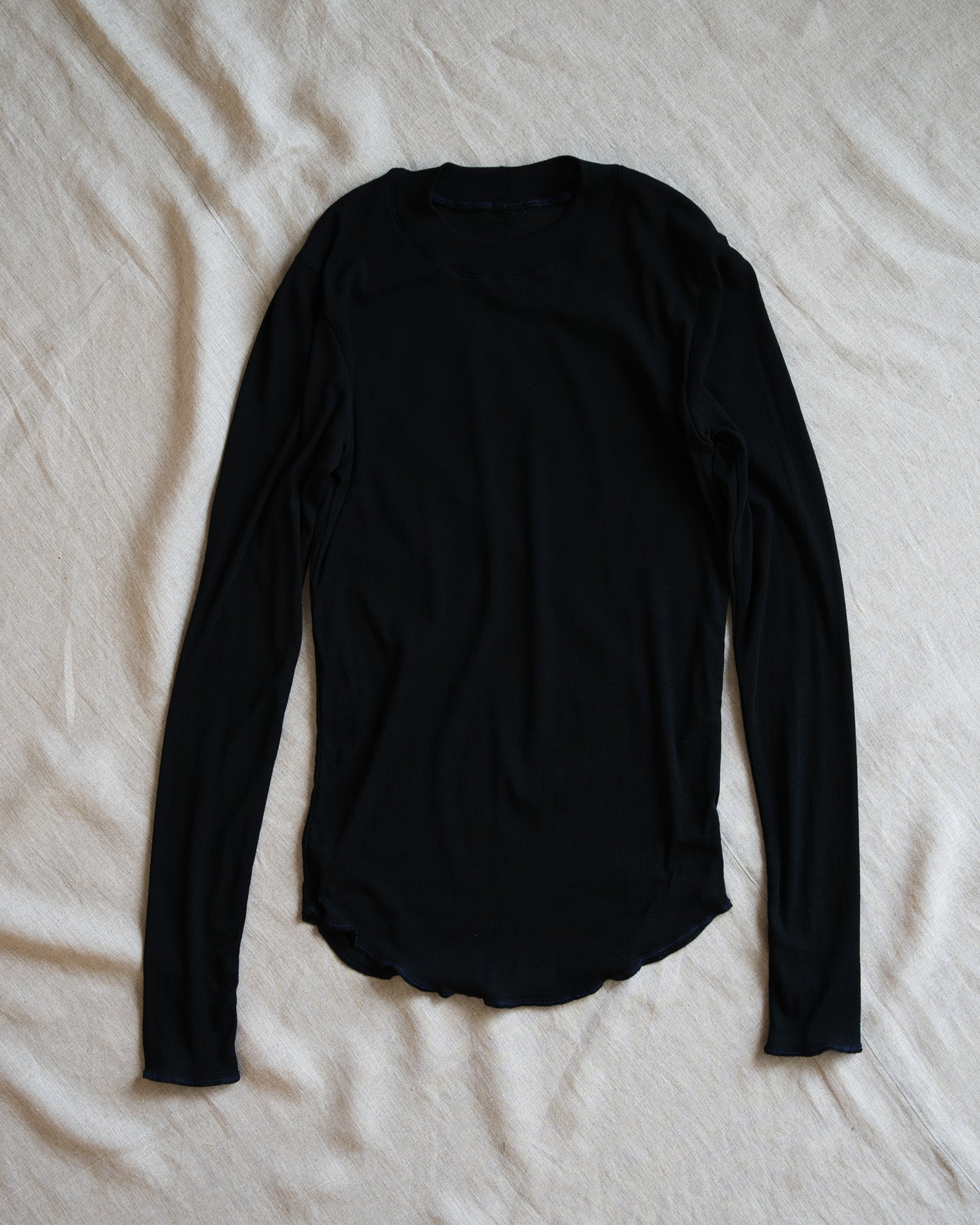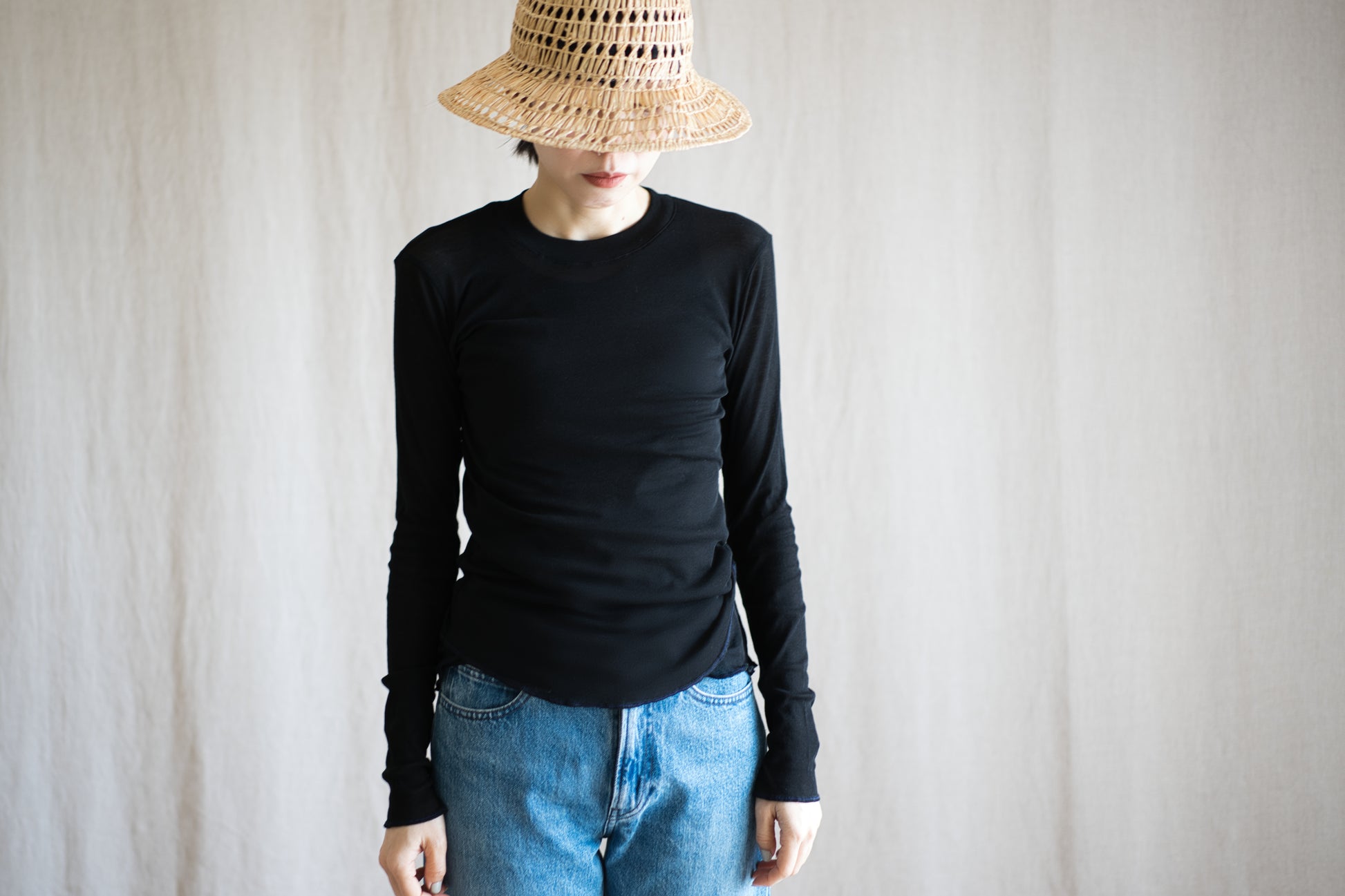 Sheer Rib Crew neck Long-Sleeved T/Black