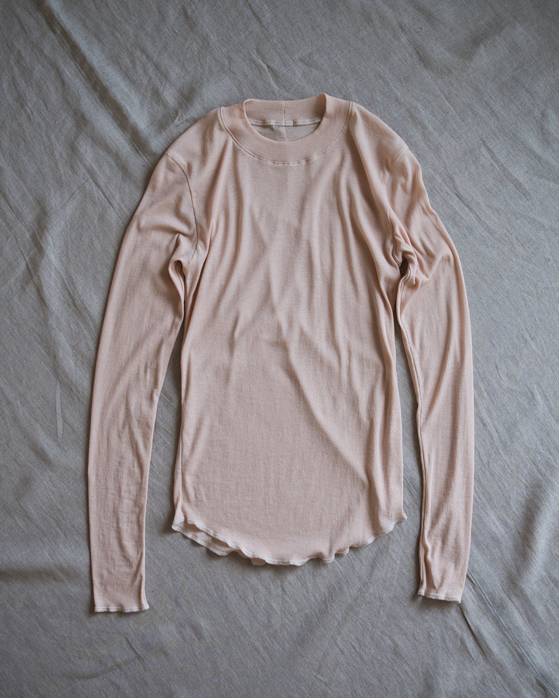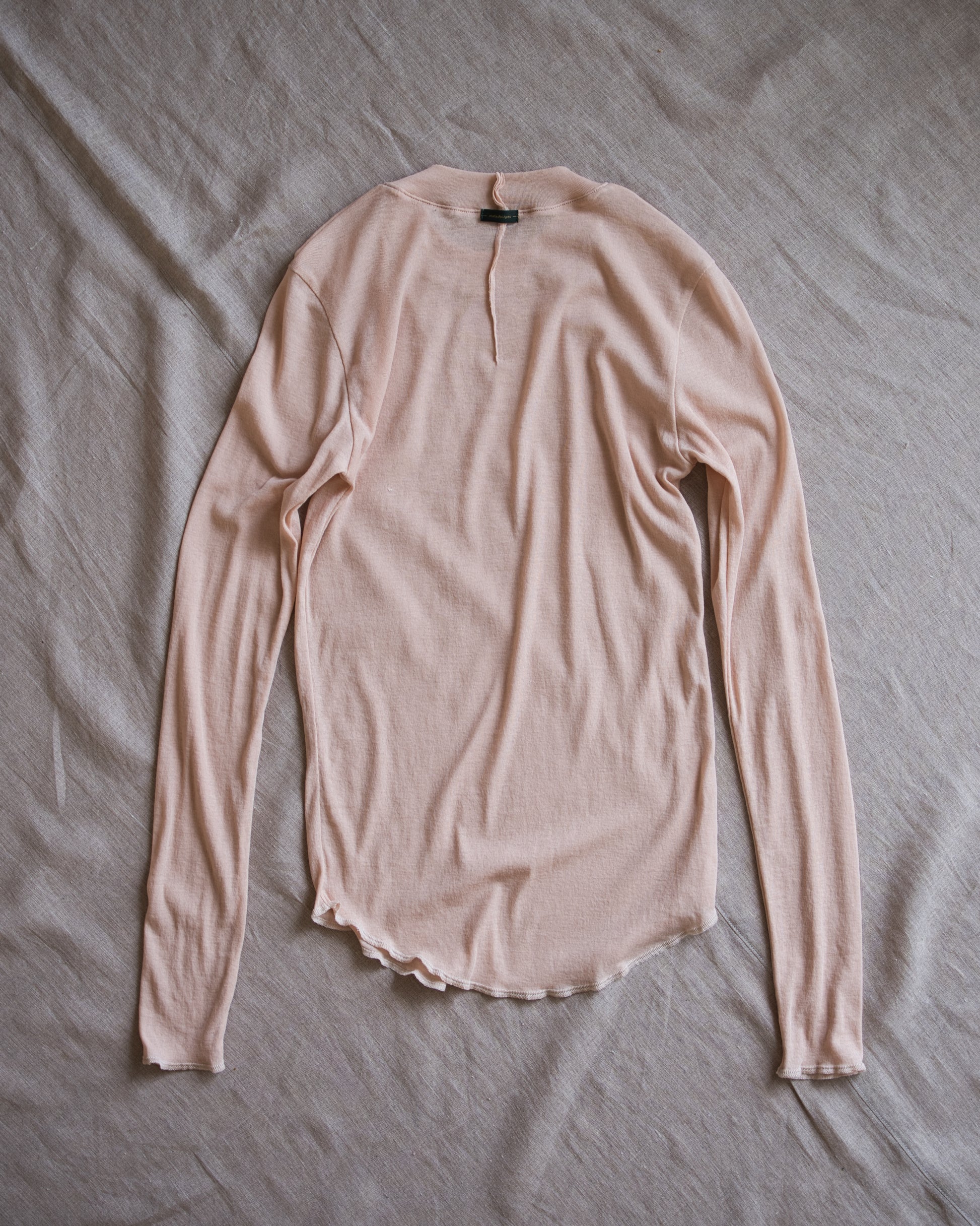 Sheer Rib Crew neck Long-Sleeved T/Pale Pink
