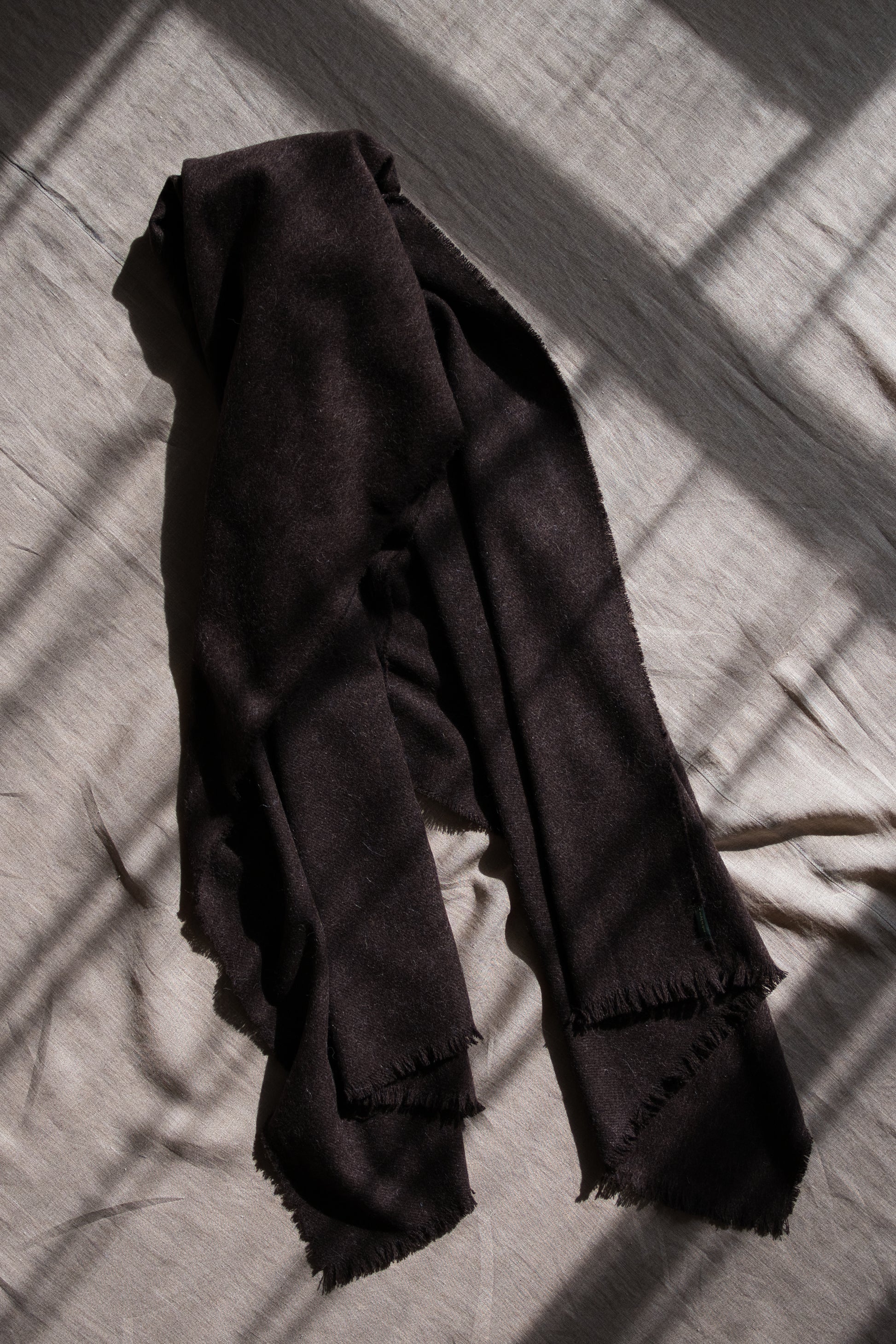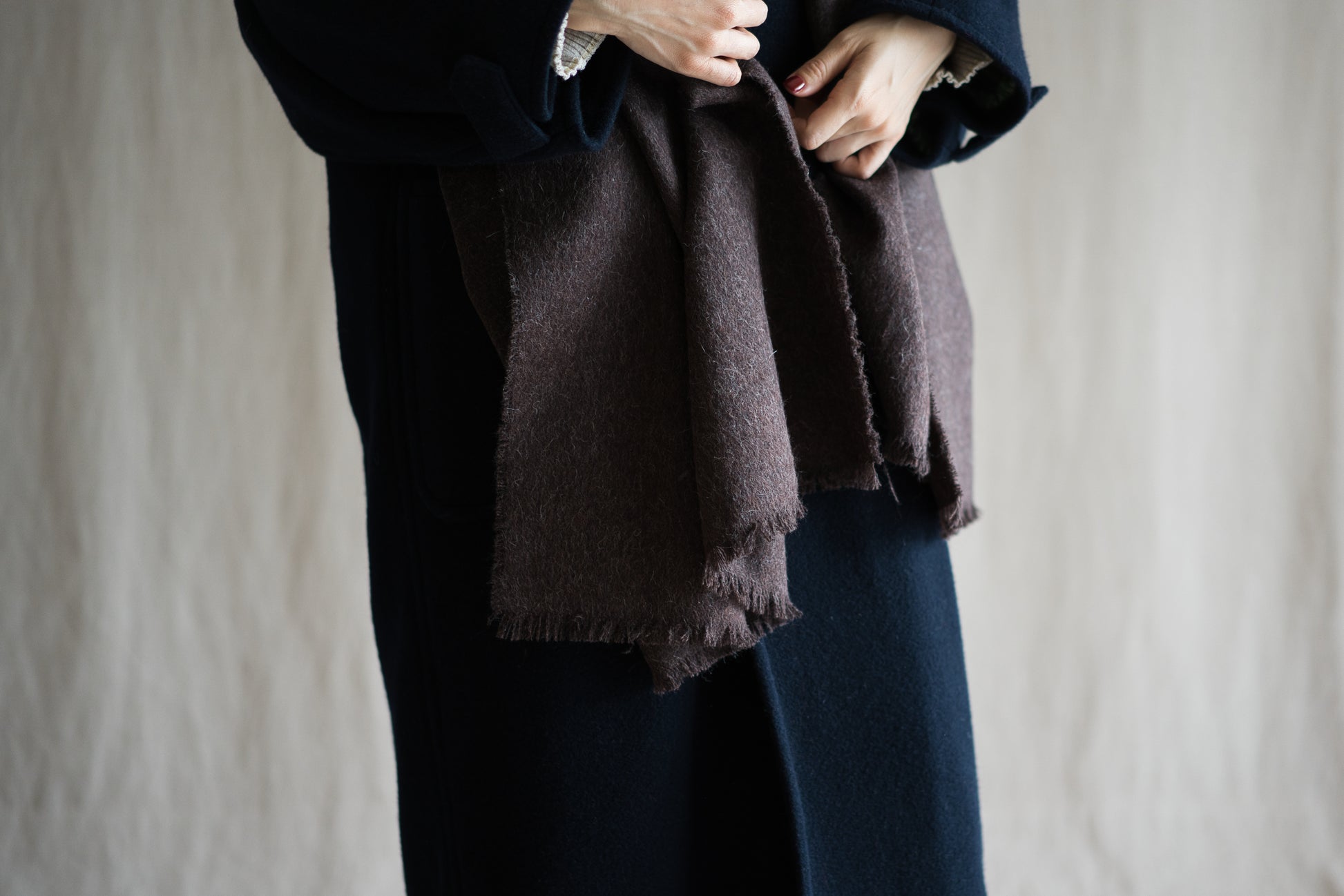 大判のストールですので、厚すぎない素材を採用し、羽織のように使用したり、首元に密着させたり、様々使用して頂ける便利なアイテムです。