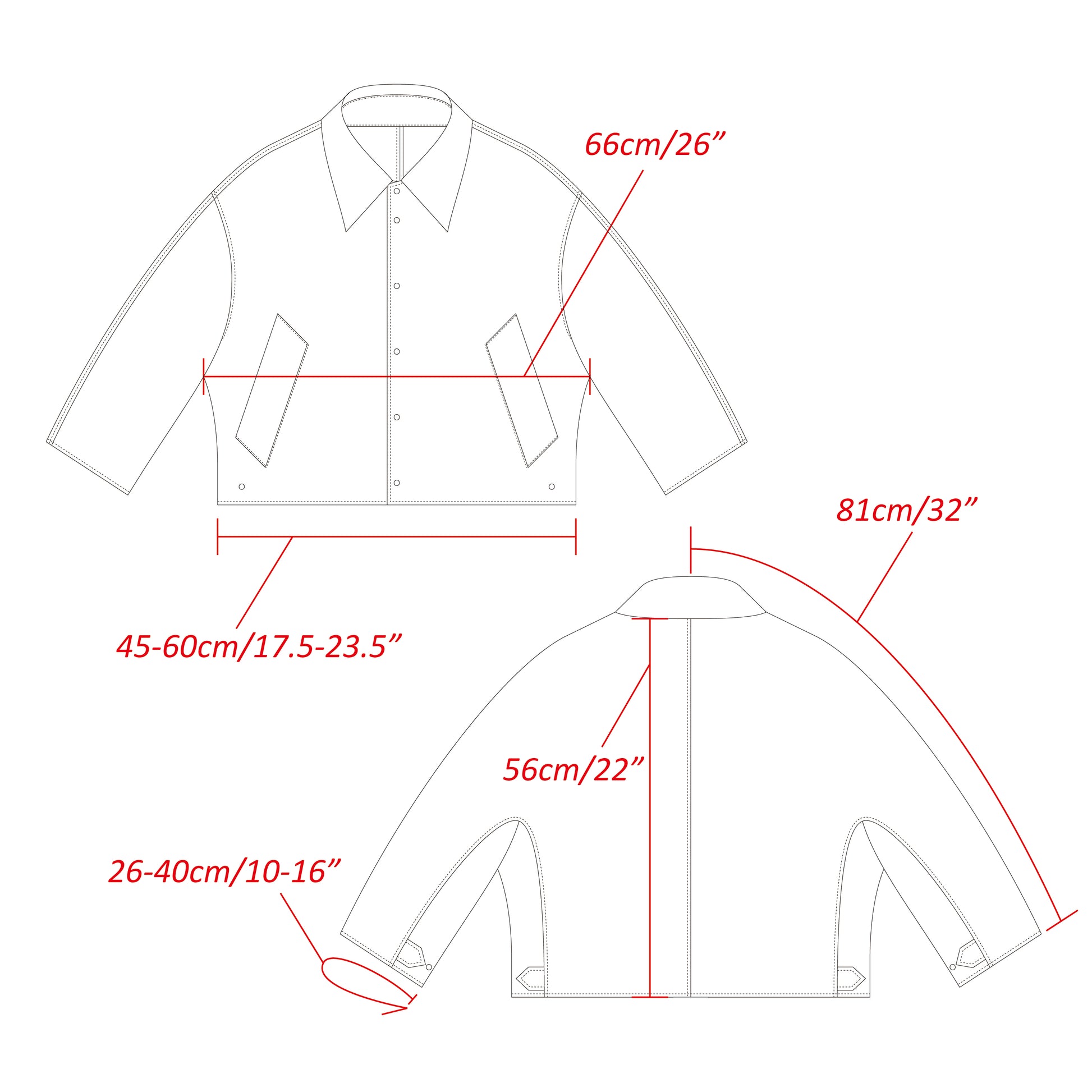 Adjustable tabs are also provided around the sleeves and hem. Feel free to experiment with different styling options.