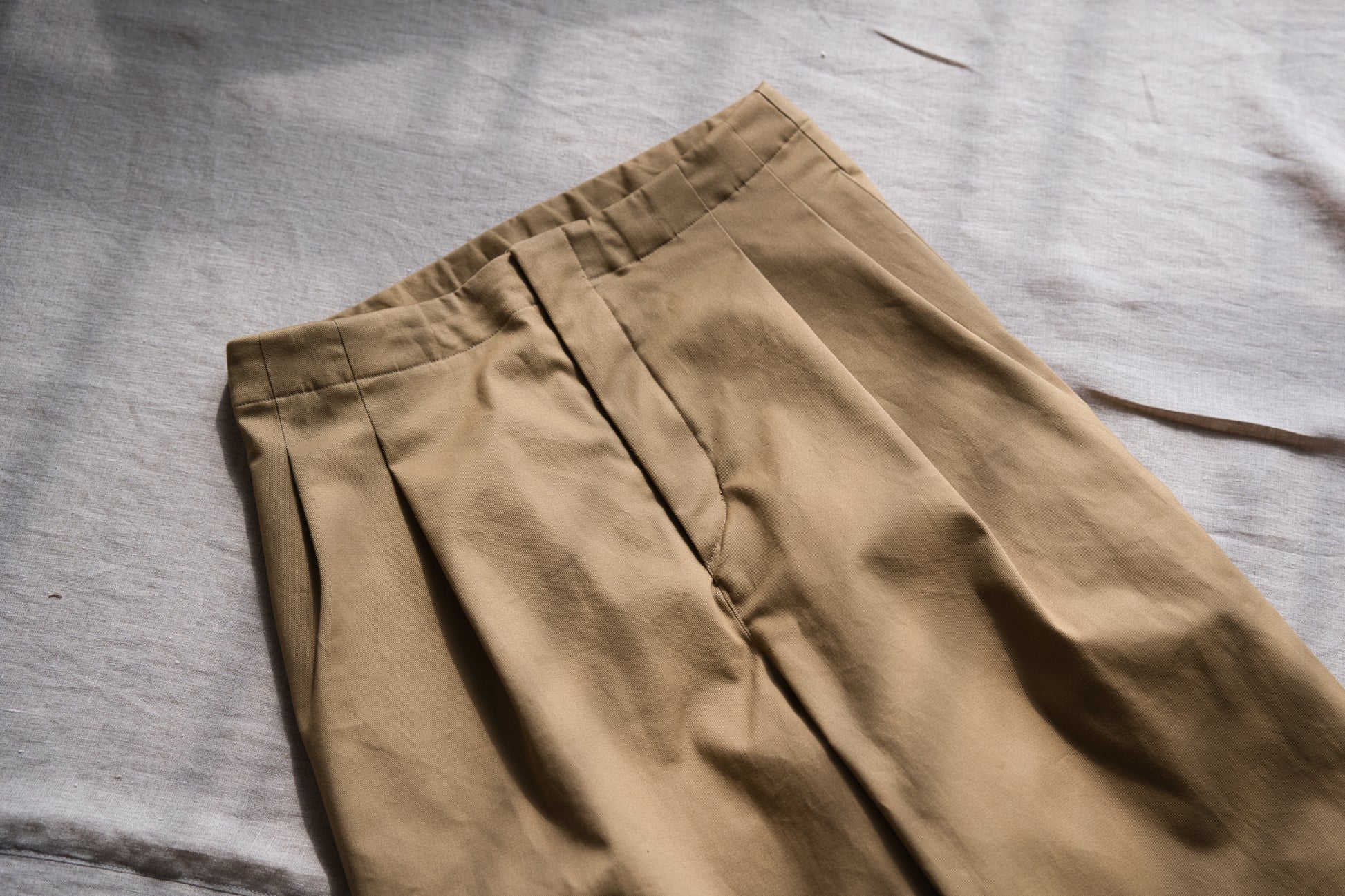 春先にぴったりな目面の細かな、綿ツイル素材を使用したタックパンツです。