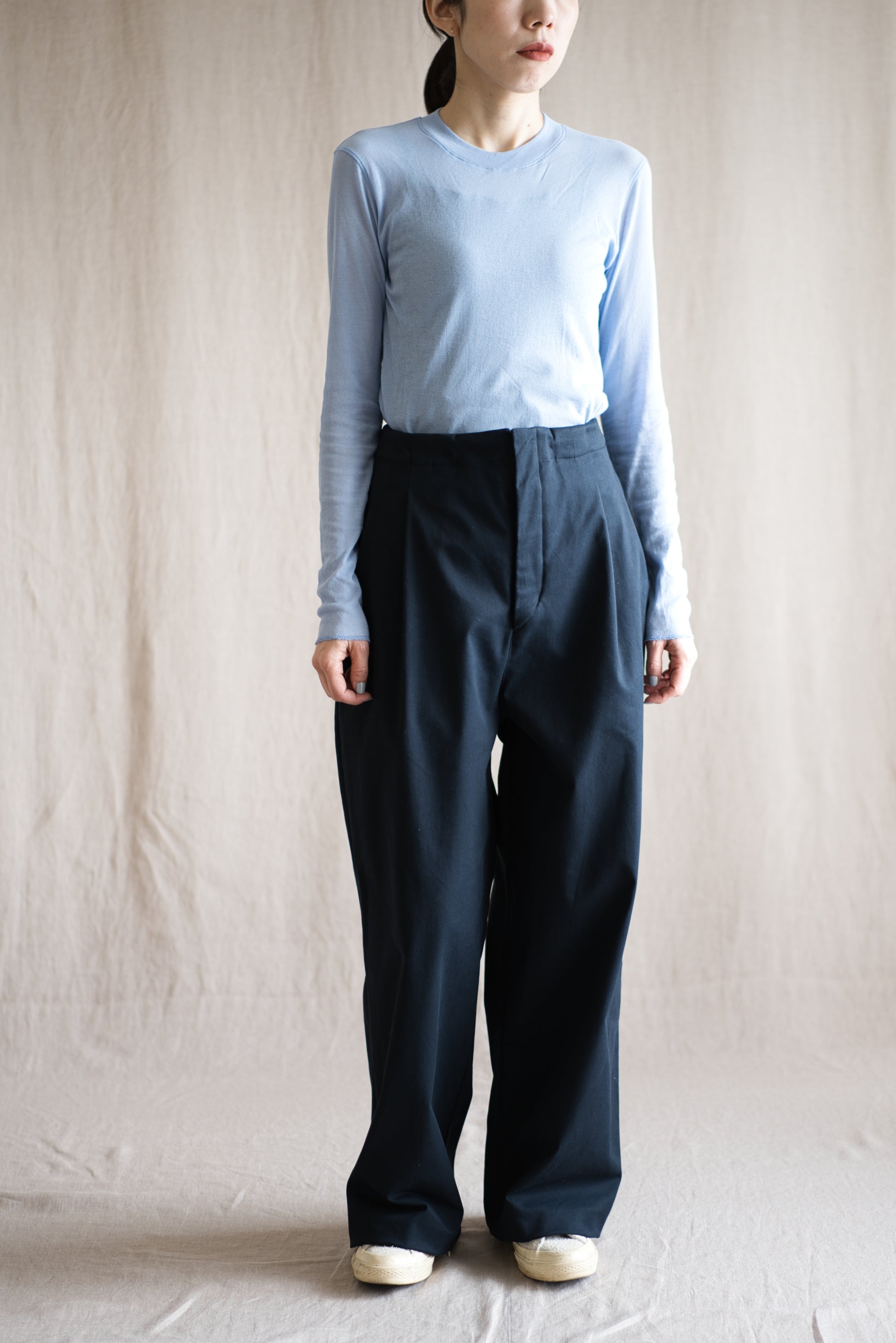 Cotton Twill W Tuck Pants/Navy