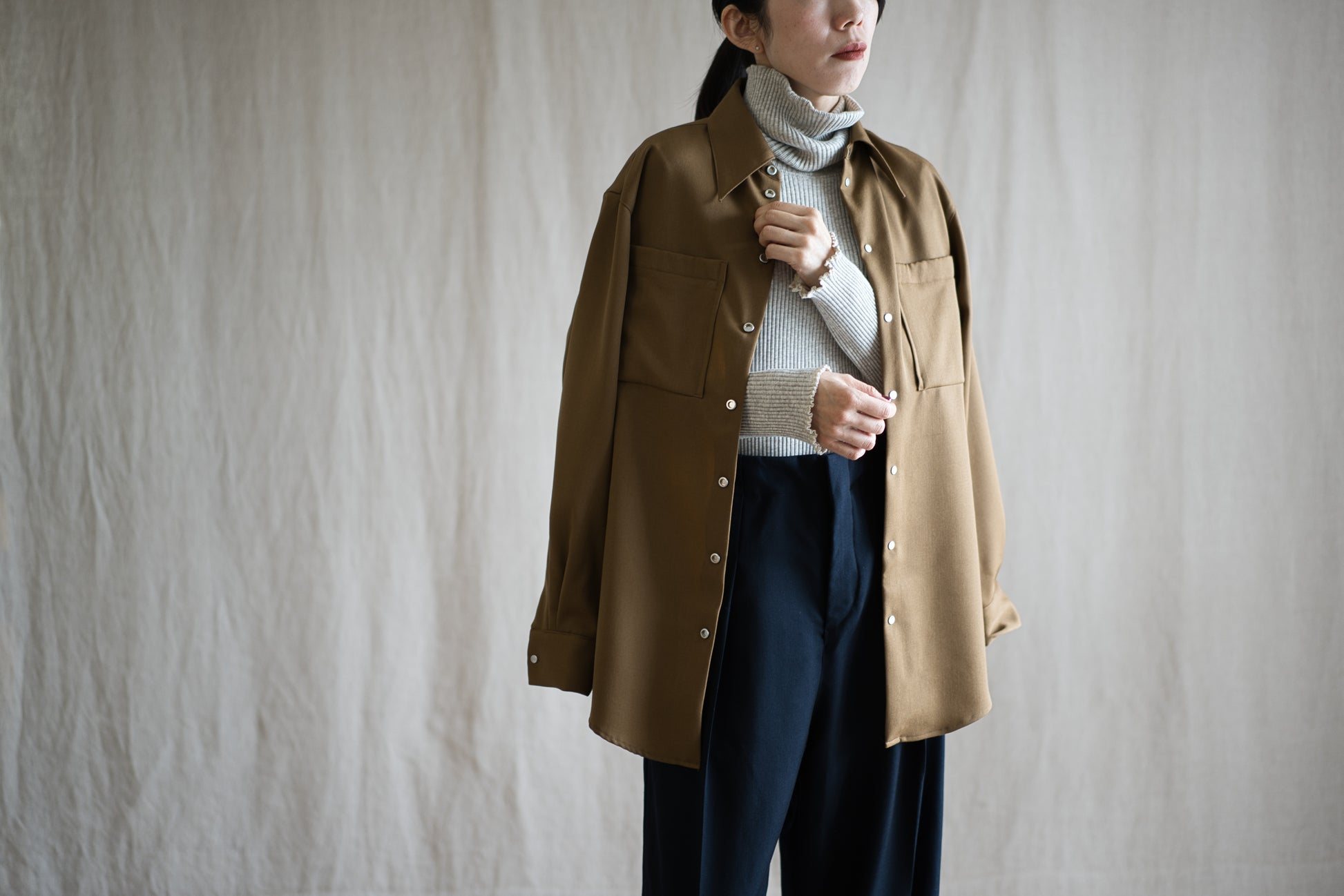 リラックスフィットシルエットでデザインされたシャツは、シャツとして、または羽織りとしてもご使用いただけます。