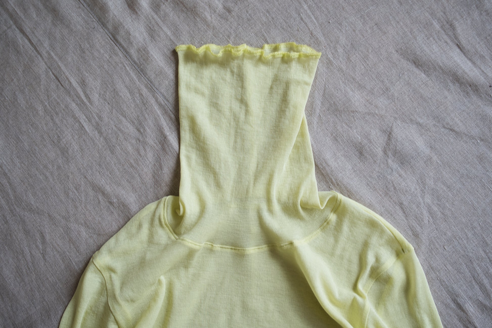 この素材の極上の着心地を、出来るだけストレスなく体感頂きたいので、体に触れる部分は一枚仕立てでデザインしました。
