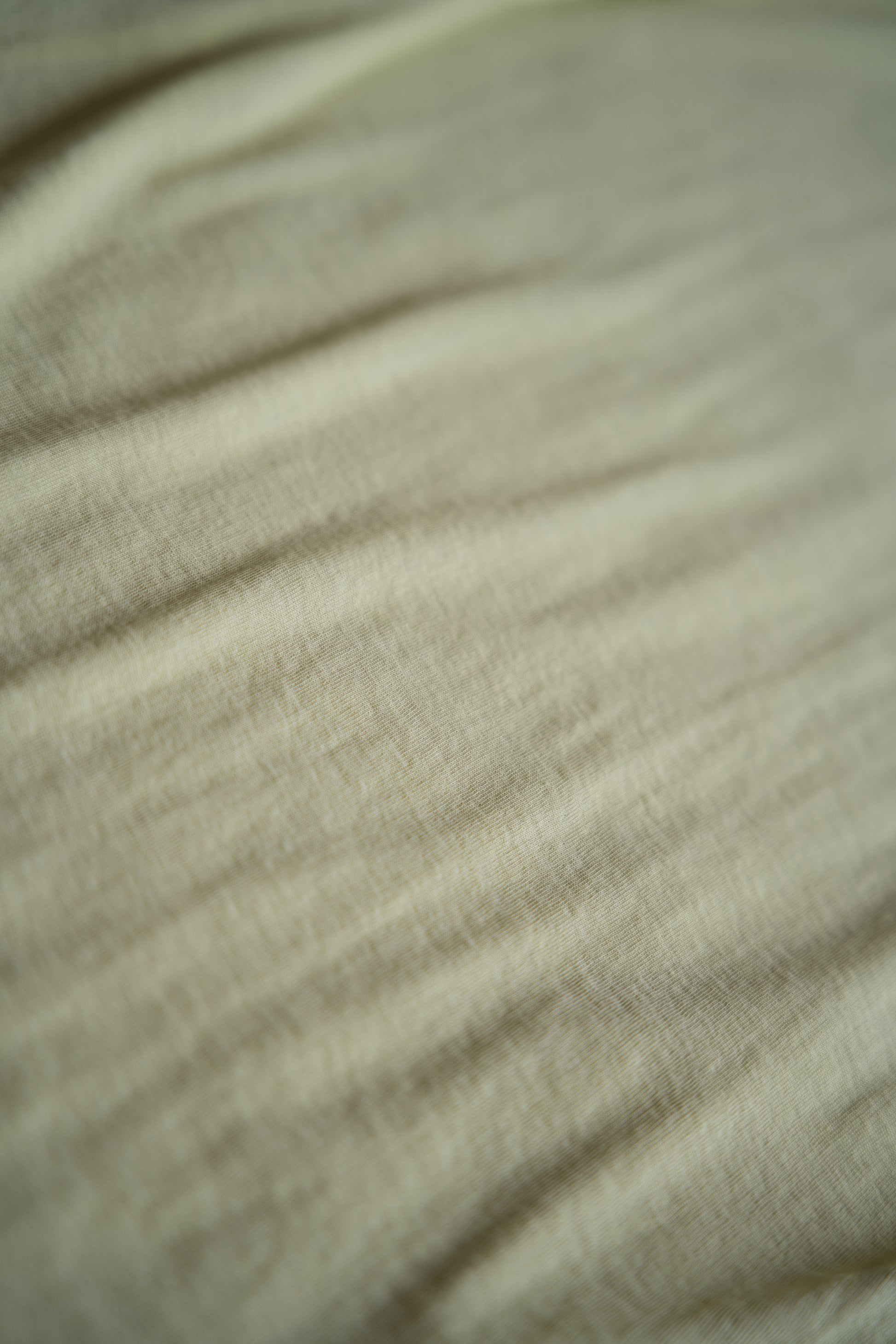 糸の製造段階で強い撚糸をかけることで、シャリ感のある春夏にぴったりな肌触りに仕上がりました。細かなリブ編で編んだカットソー生地は、ストレッチ性に富み、体を優しく包みます。