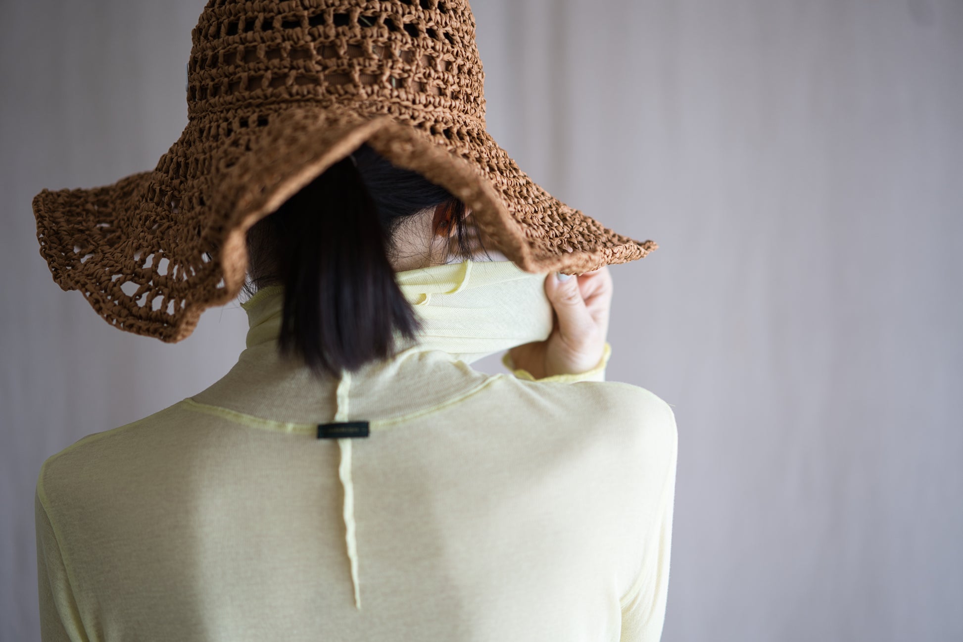 The yarn is twisted strongly at the manufacturing stage to give it a crisp feel that is perfect for spring and summer. The cut-and-sew fabric, knitted in a fine ribbed weave, is rich in stretch and gently wraps the body.