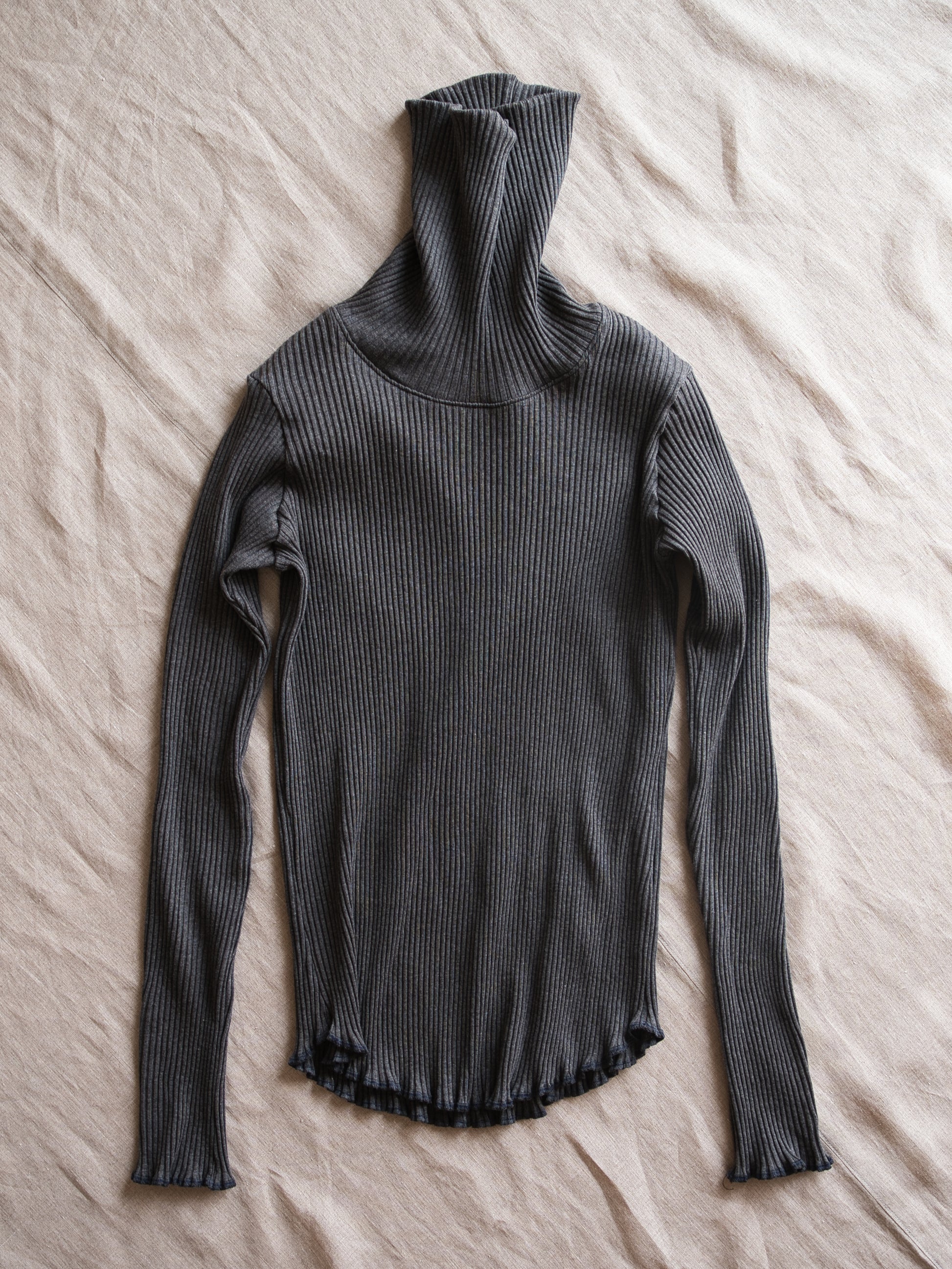 The rib knit, woven with cotton and yak wool, boasts substantial thickness and exceptional stretch, gently conforming to any body shape.