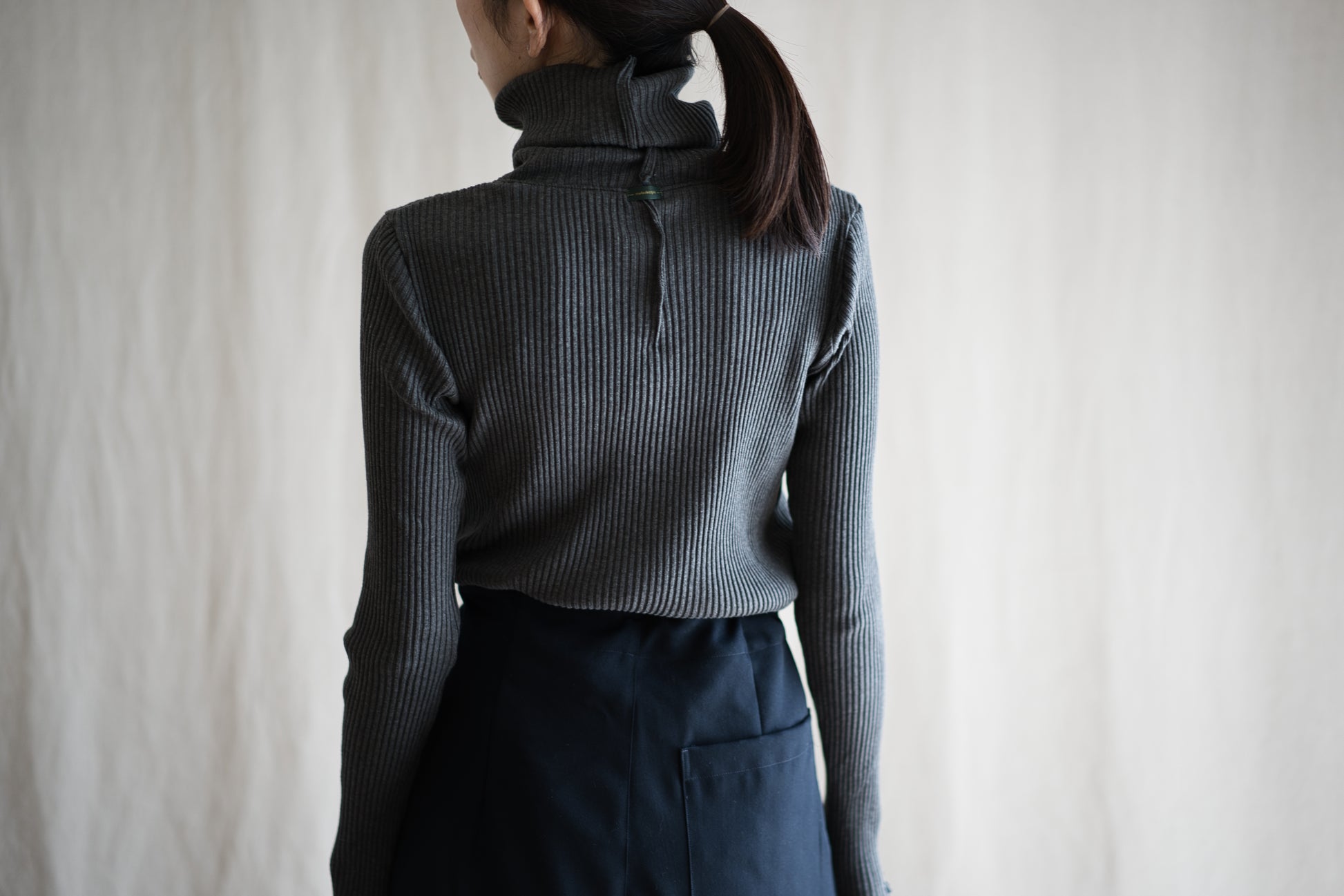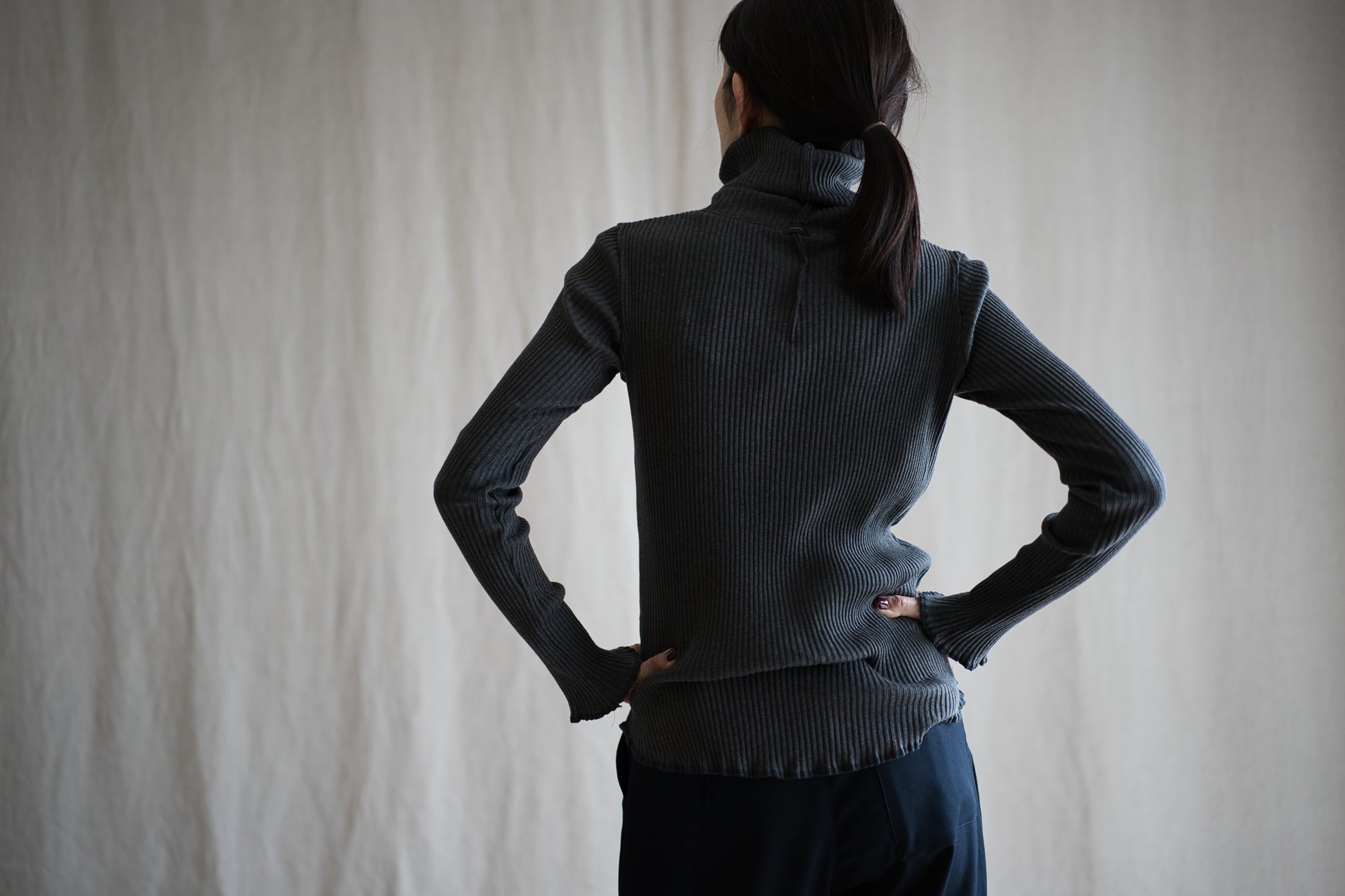 YAK WOOL COTTON Rib-knit Turtle-neck&Frill/Khaki